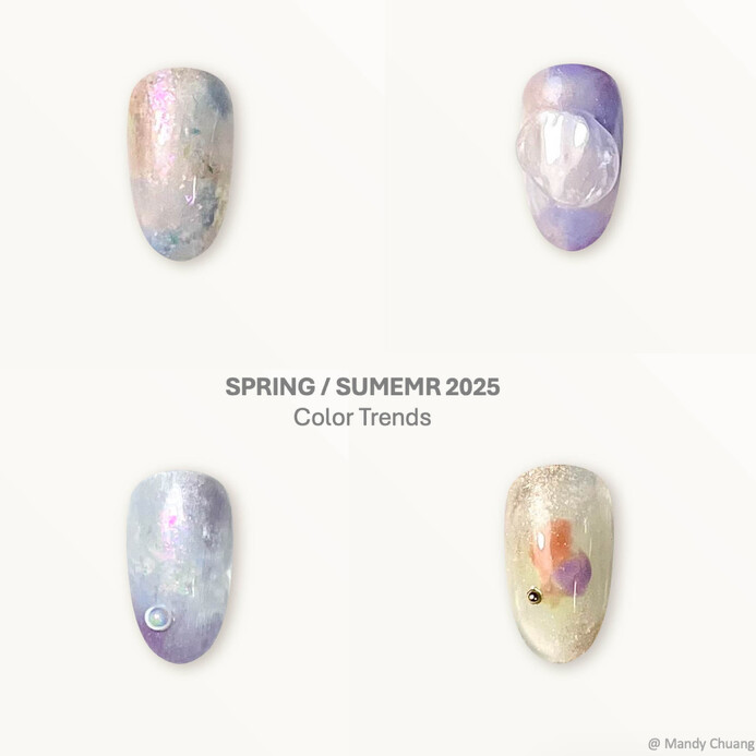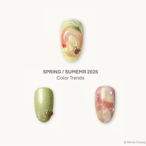 OPI Taiwan资深美甲师Mandy也以2025春夏流行主题色调打造花园感趋势美甲。