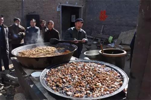 其次,再说说其他民间美食,比如腊八节、端午节,甚至是婚丧嫁娶当地人都要吃的溜米,比如一年四季都会吃的沾片子,比如用荞麦面做的灌肠。此外,还有享誉周边地区的孟封饼和徐沟豆腐干。